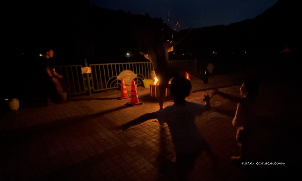 ですが、「CAUNA Nara Uda(キャウナ 奈良宇陀)」では受付や巡回のたびに困っていることはないかと声をかけてくれ、子ども達に優しくマシュマロの上手な焼き方を教えてくれたり、イベントではキャンプファイヤーで楽しませてくれたりと、おもてなしの心が感じられました。