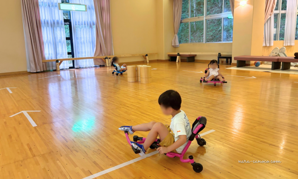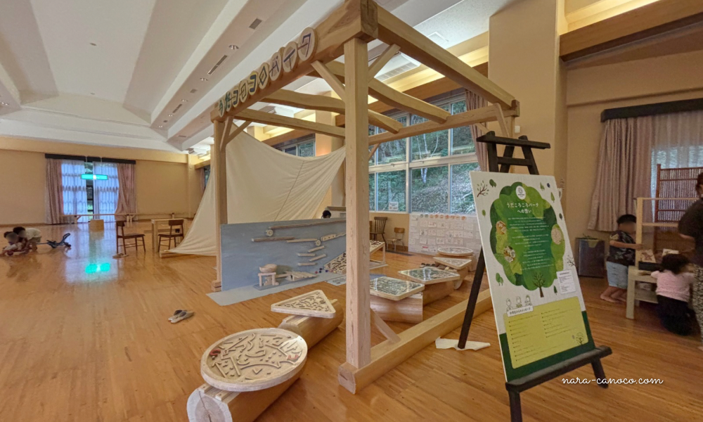 「森の館」2階の多目的ホールは屋内遊び場になっており、未就学児にぴったり!