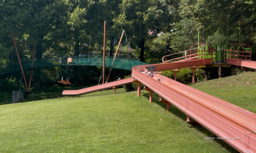 山の斜面を活用した全長約400mの巨大遊具で、「森の館」3階から行くことができます。