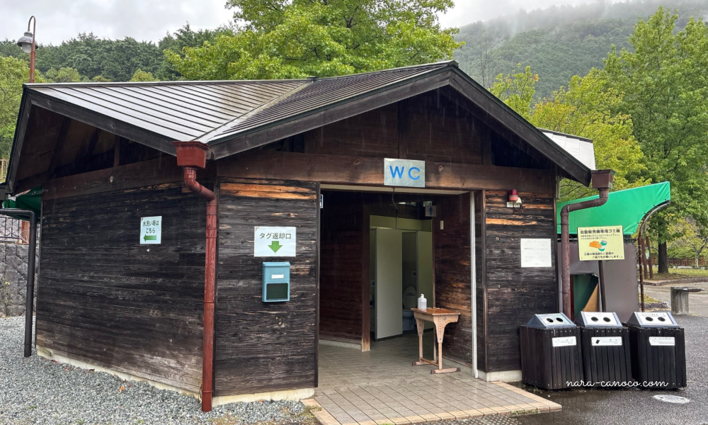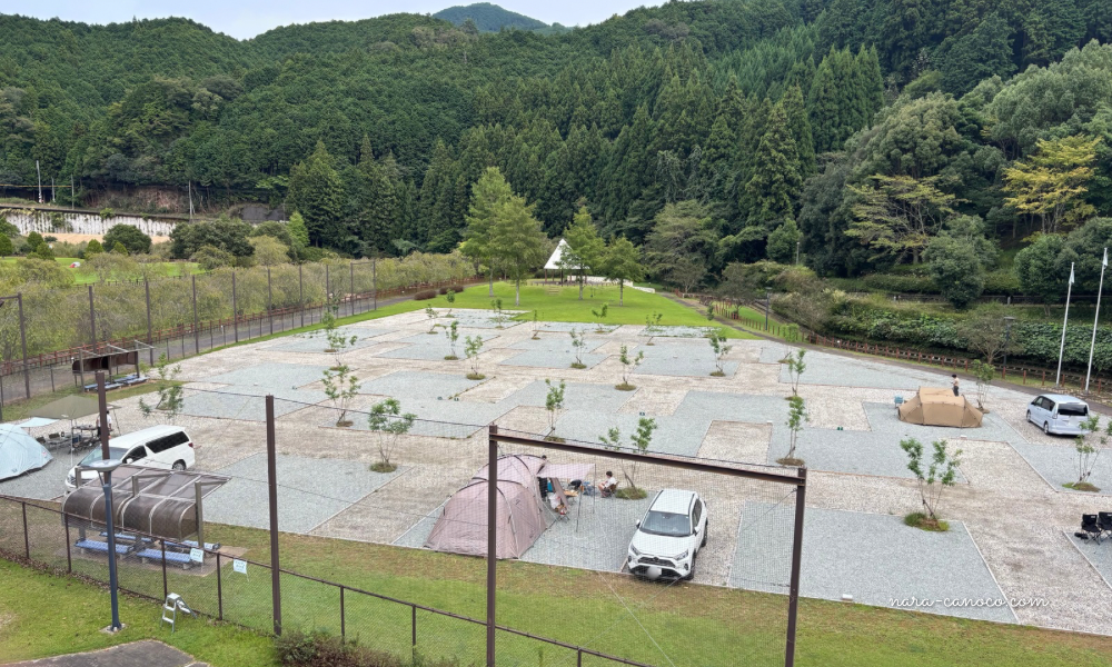 区画自体は水捌けが良かったのですが、雨の中、足場の悪い道を歩いてトイレに行くのは子連れだと少し大変でした。