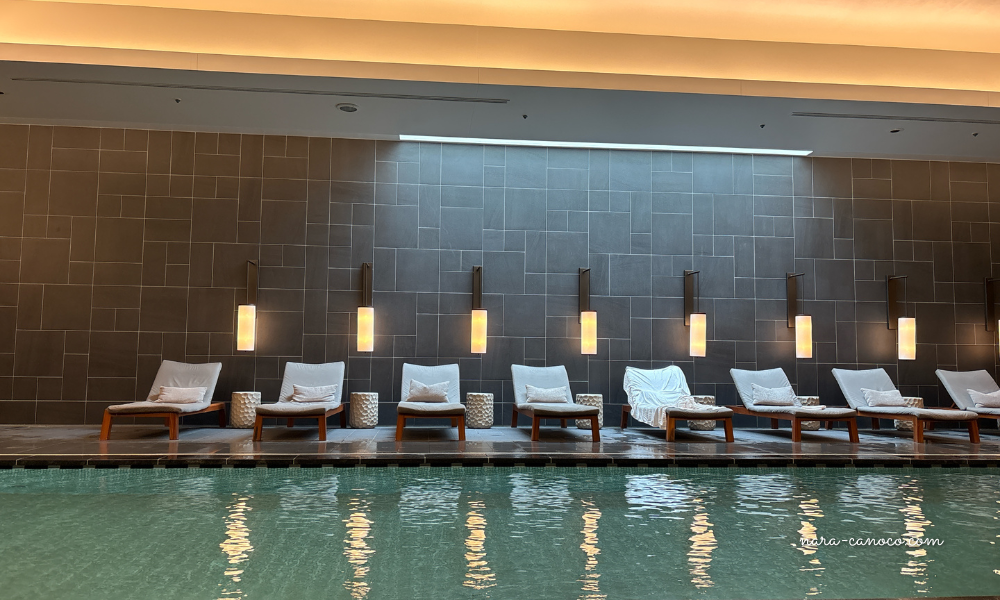 プールはジャグジー・サウナ・シャワールーム・フリードリンク(デトックスウォーター)・水着脱水機など設備が整っていて大人には十分満足できる内容。