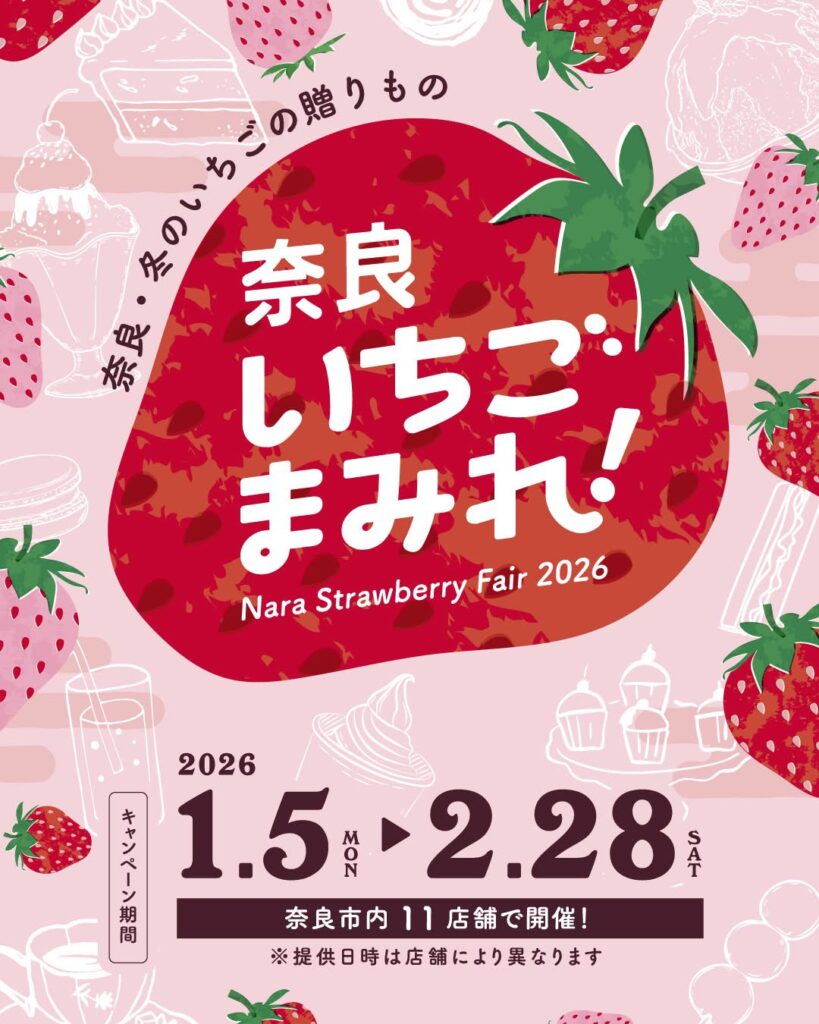 - 内容: 「奈良のいちご」を使った各店舗限定のスイーツが登場します。