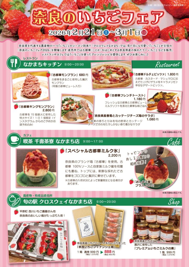 道の駅クロスウェイなかまち「奈良のいちごフェア2026」