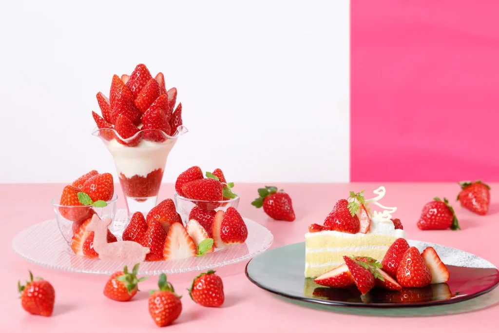 新鮮ないちごをたっぷり使った、写真映え間違いなしの巨大パフェや限定メニューが魅力です。