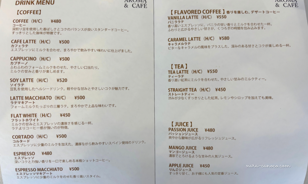 ドリンクはコーヒーや紅茶のほか、ジュースもあるので、子連れでも安心です。