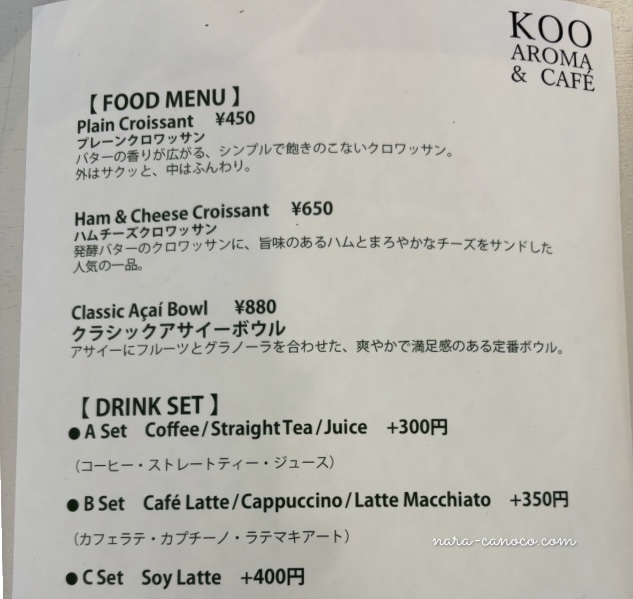 チョコクロワッサンだけでなく、プレーンのクロワッサンを利用したフードや、ドリンクメニューもあります。