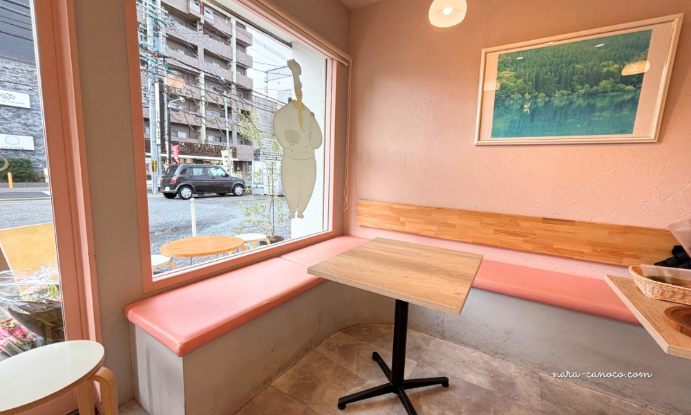 白とピンクを基調とした可愛い店内には、明るい日差しが入り込みます。